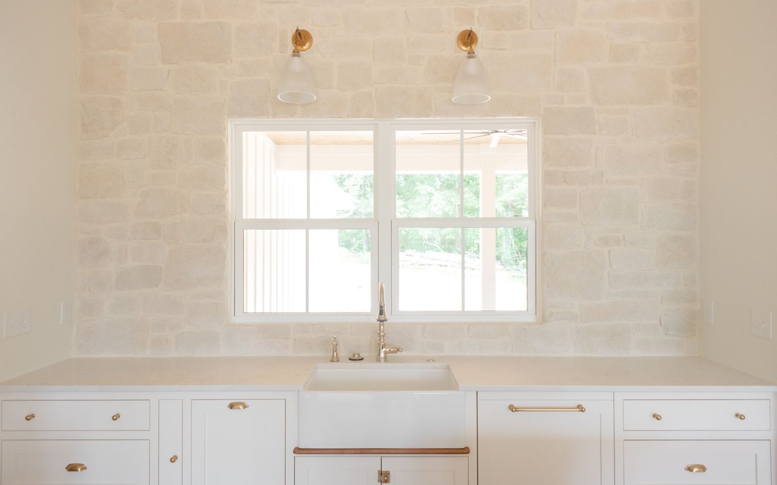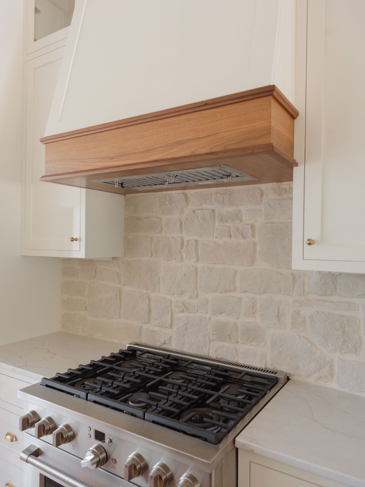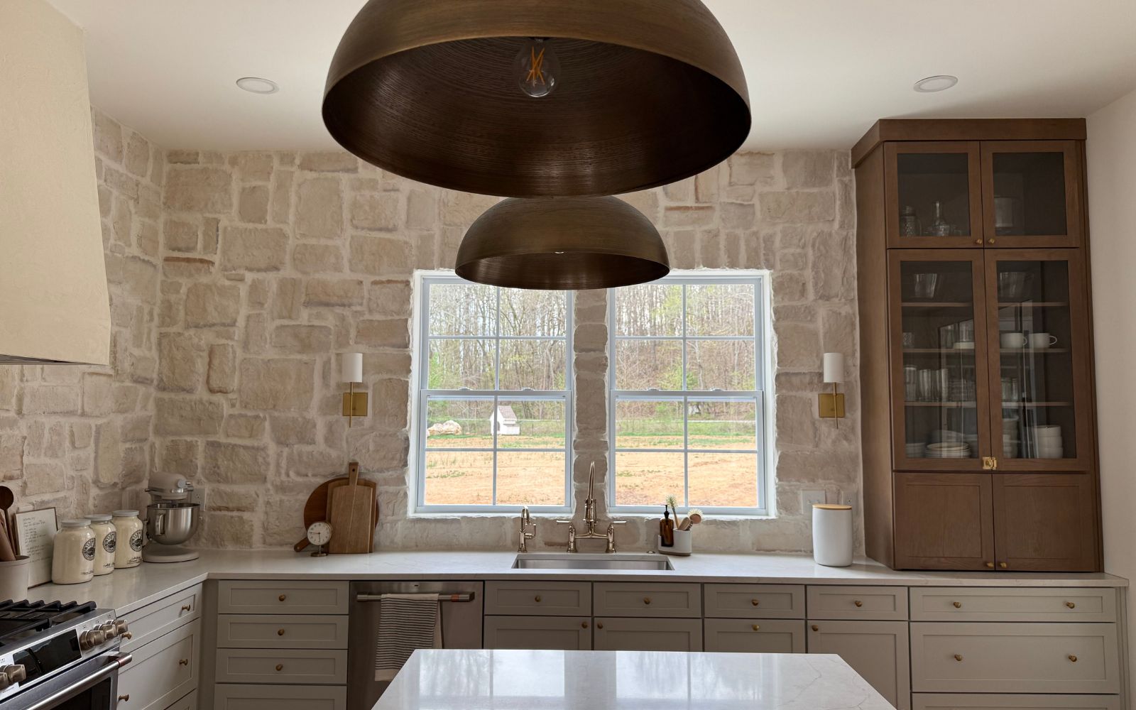 Our inspiration came from Joanna Gaines’ kitchen in the Grist Mill. The texture, the softness of the stone, and the sense of age it added to that space really stayed with us. We wanted a kitchen that felt lived-in and loved from day one, and a natural stone backsplash felt like the perfect choice to create that feeling.