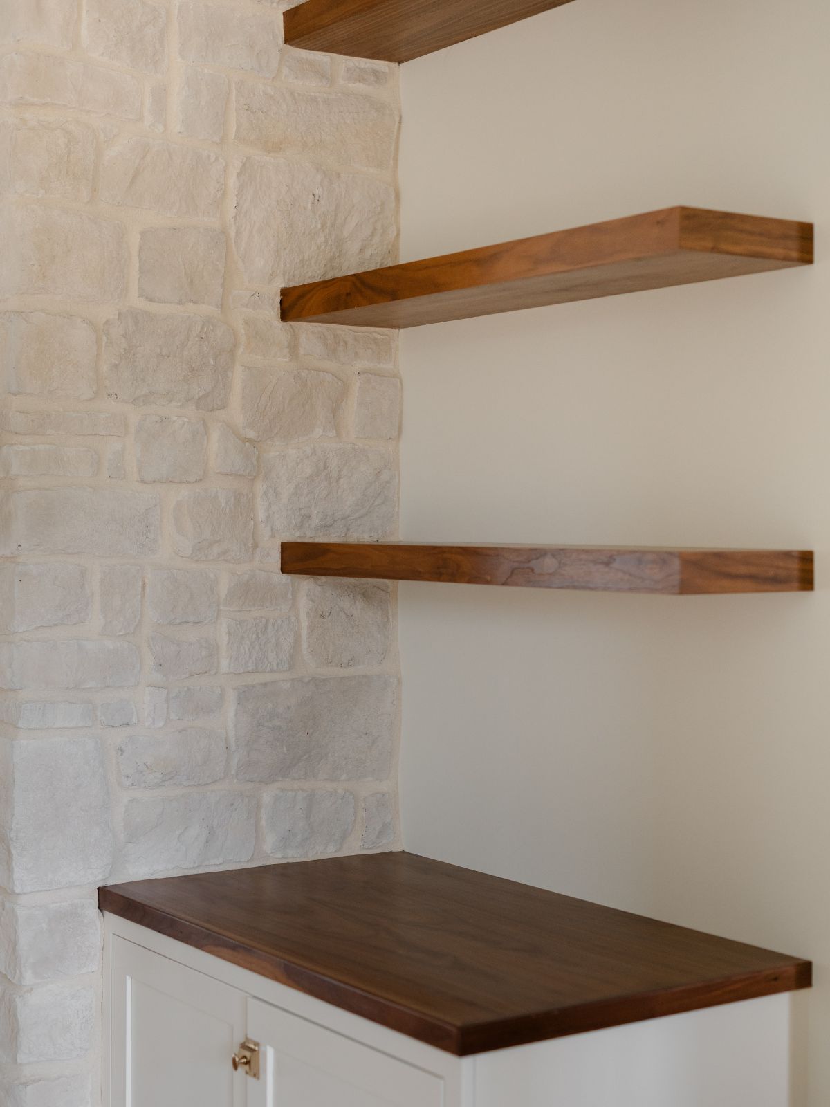 When we discovered the 19th Century Stone from Horizon Stone, we just knew it was right. Rather than the traditional rectangular stone you often see, this one has this irregular cobblestone look. Each piece is slightly different in shape, with rounded edges and soft, earthy tones that fit so seamlessly into a quiet, elevated home.